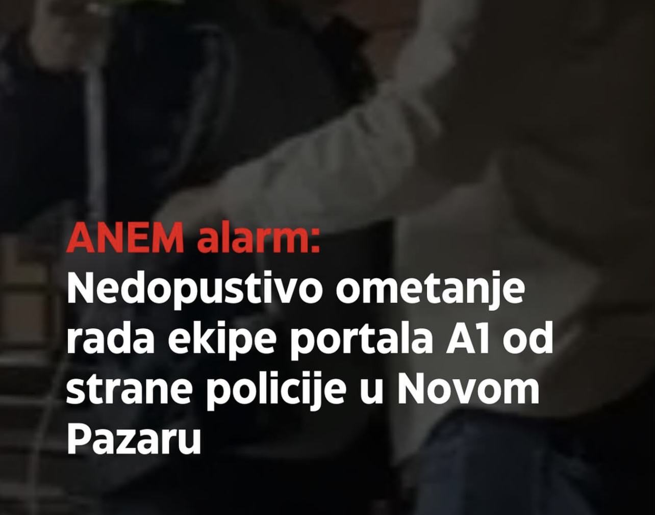 Asocijacija nezavisnih elektronskih medija (ANEM) najoštrije je osudila ponašanje policije prema novinarskoj ekipi portala A1 iz Novog Pazara, koja je u subotu uveče bila sprečena da obavlja svoj posao na terenu. ANEM je pozvao Ministarstvo unutrašnjih poslova da u budućnosti obezbedi svim novinarima i novinarkama nesmetan rad i poštovanje njihovih profesionalnih prava.