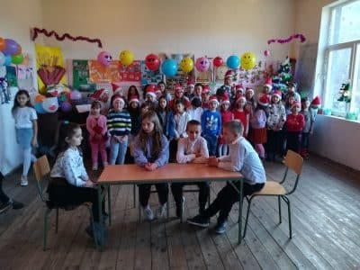 Novogodišnje veselje trajalo i posle glavnog dela programa tako što su se učitelji i dečica nastavili družiti u prostorijama ove škole uz dečije novogodišnje pesmice i slatkiše.