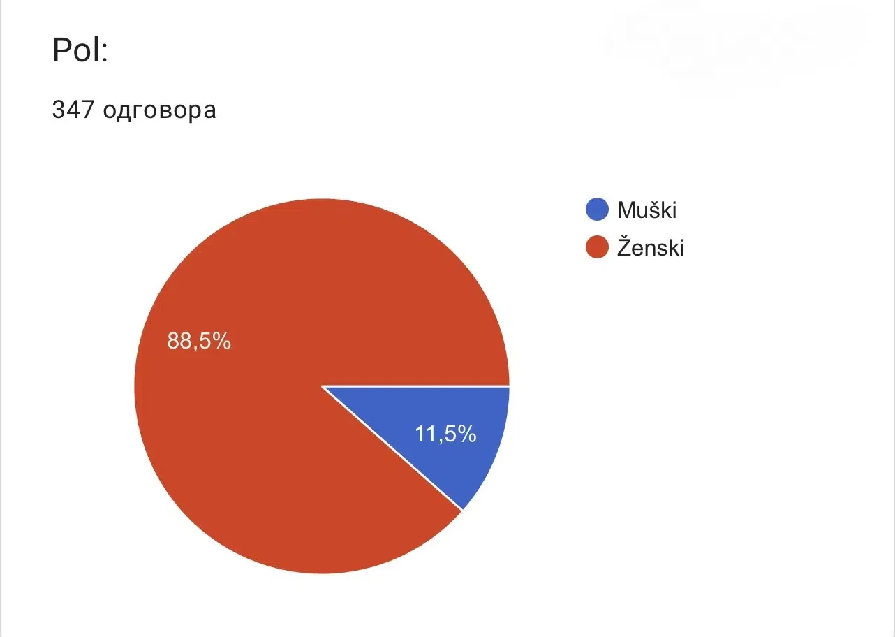 Na ovu anketu odgovorilo je 88.5 % žena, dok muška populacija čini 11.5 % odgovora.