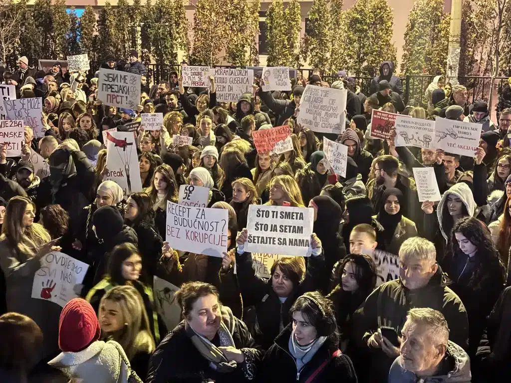 Podsećamo, večerašnji protest posvećen je odavanju pošte žrtvama iz Novog Sada i sugrađaninu Ernadu Bakanu.