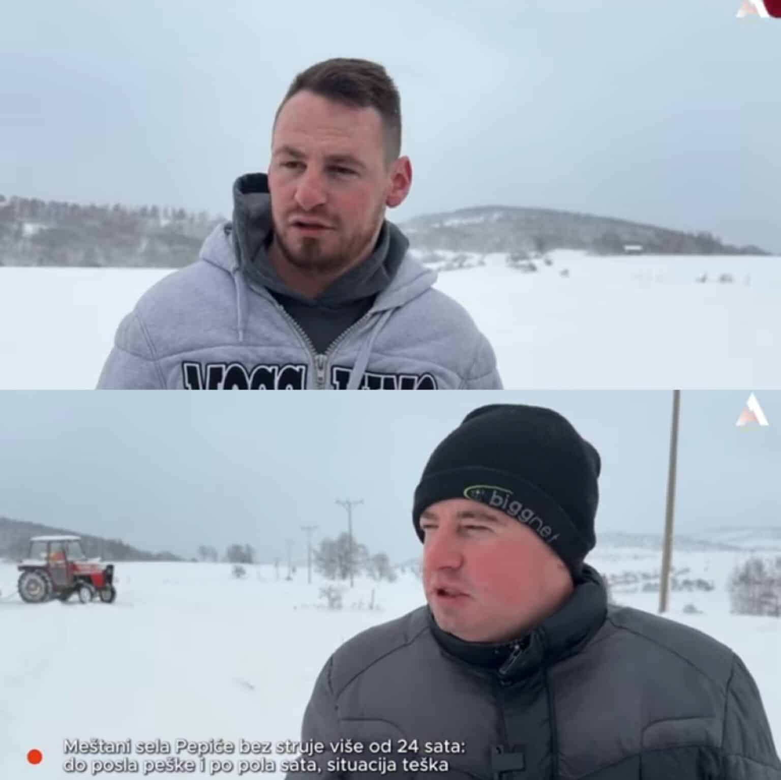 Meštani sela Pepiće već više od 24 sata nemaju struju i žive u izuzetno teškim uslovima zbog obilnih snežnih padavina. Snijeg je visoko zavejao puteve, a čišćenje nije izvršeno, pa mnogi do posla moraju peške i po pola sata.