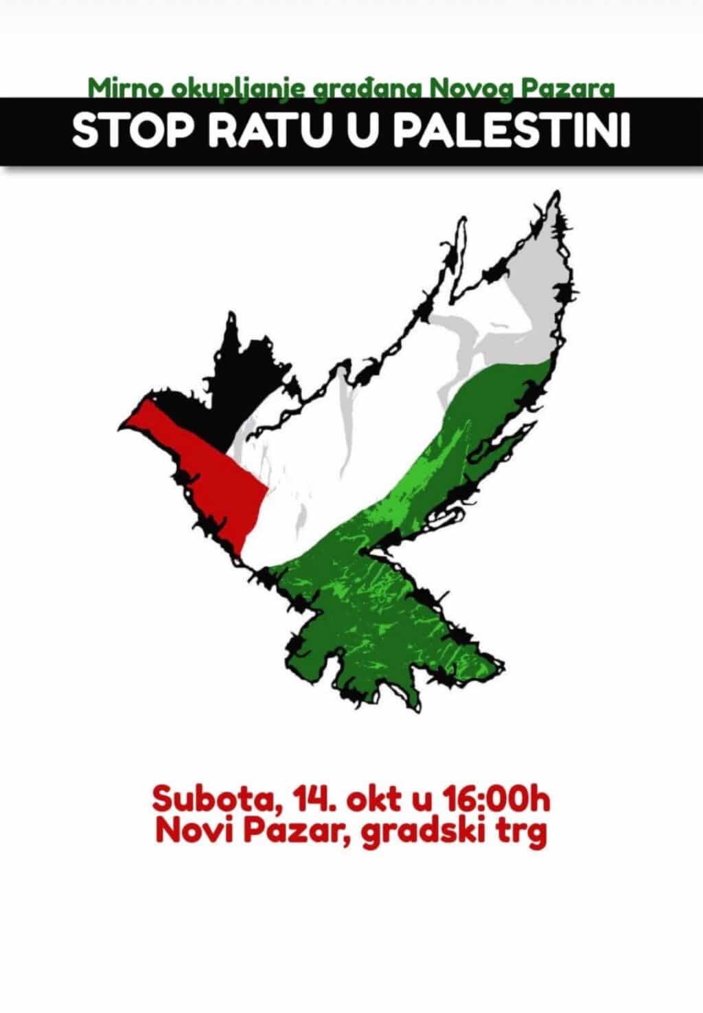 U znak podrške palestinskom narodu, neformalna grupa iz Novog Pazara na društvenim mrežama najavila je mirni protest koji će se održati u subotu, 14. oktobra. Skup će početi u 16 časova na gradskom trgu.