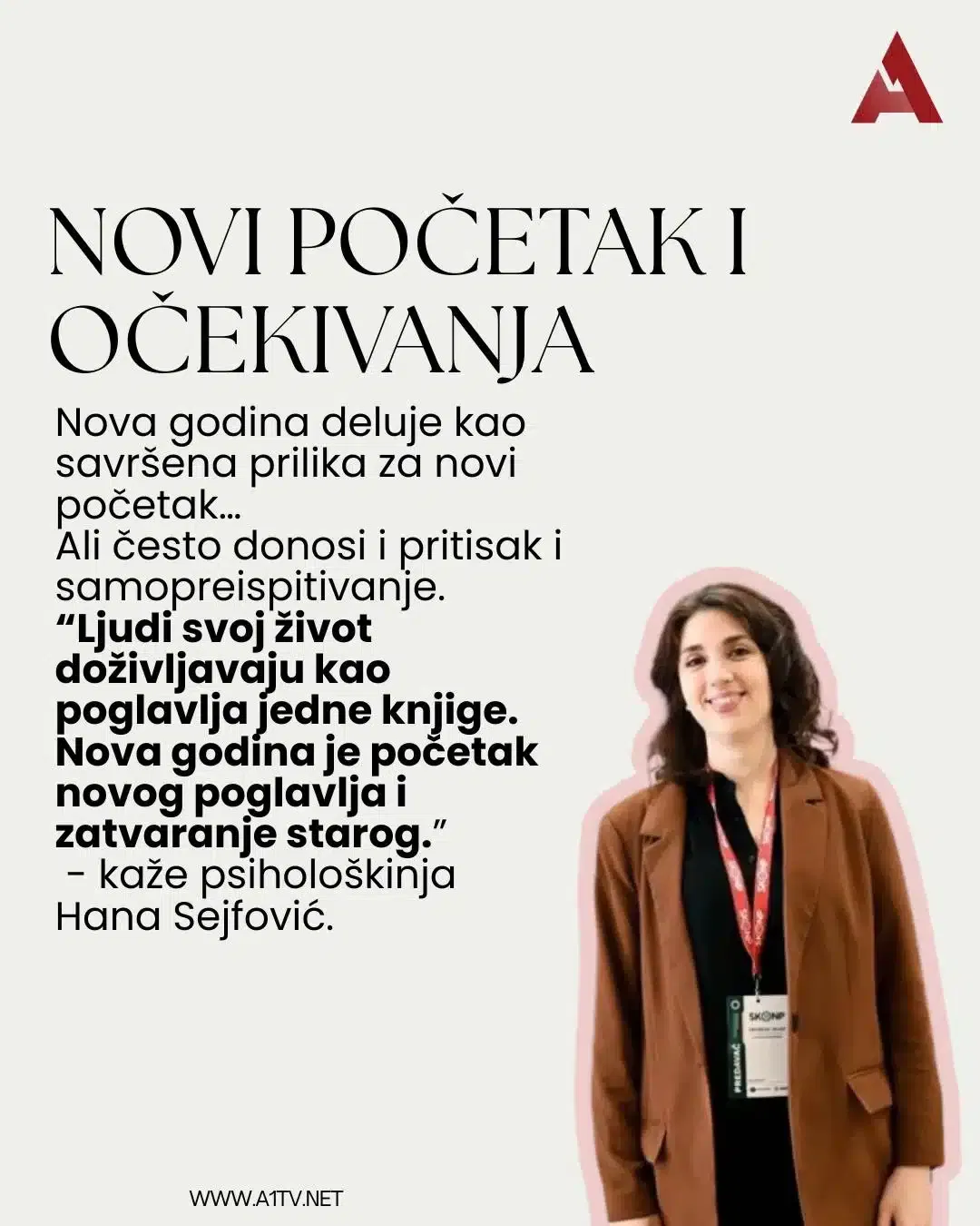 Hana objašnjava: “Početak godine nije magičan datum promene. To je dan kao i svaki drugi. Prava moć za promenu nalazi se u nama i aktivira se onda kada smo za to spremni. Ljudi često sebi nameću pritisak da budu srećni, uspešni i produktivni odmah, i zbog toga osećaju teskobu i zabrinutost. Mentalno zdravlje ne znači stalnu sreću, već sposobnost da istovremeno živimo sa tugom, nadom, nezadovoljstvom i zahvalnošću. Sposobnost da prihvatimo promene i nesigurnost čini život bogatijim i ispunjenijim,” kaže Hana.