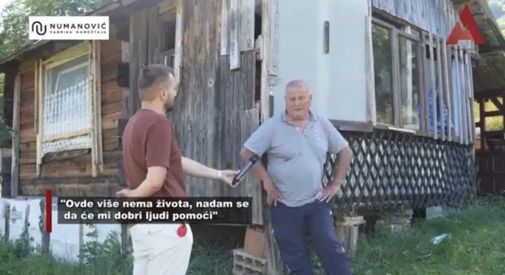 Kuća u kojoj živi je u lošem stanju, nema priključenu vodu, ni kupatilo, ni funkcionalnu električnu mrežu.