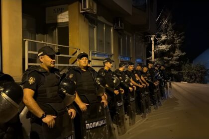 Veliki broj policajaca večeras ispred prostorija SNS-a u Novom Pazaru (VIDEO)
