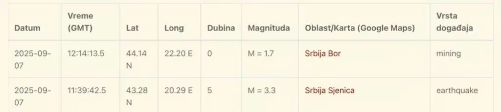 Pored Sjenice, danas je zabeleženo i podrhtavanje tla u Boru, magnitude 1,7 stepeni po Rihteru, na površinskoj dubini.