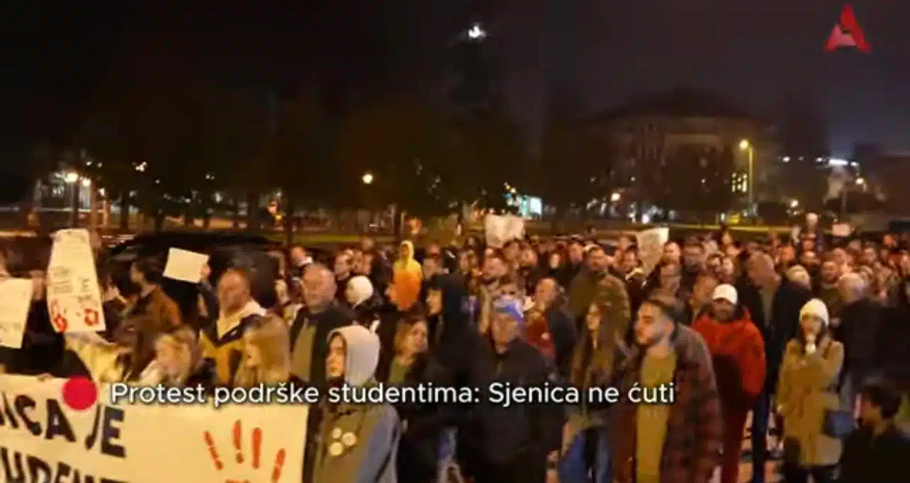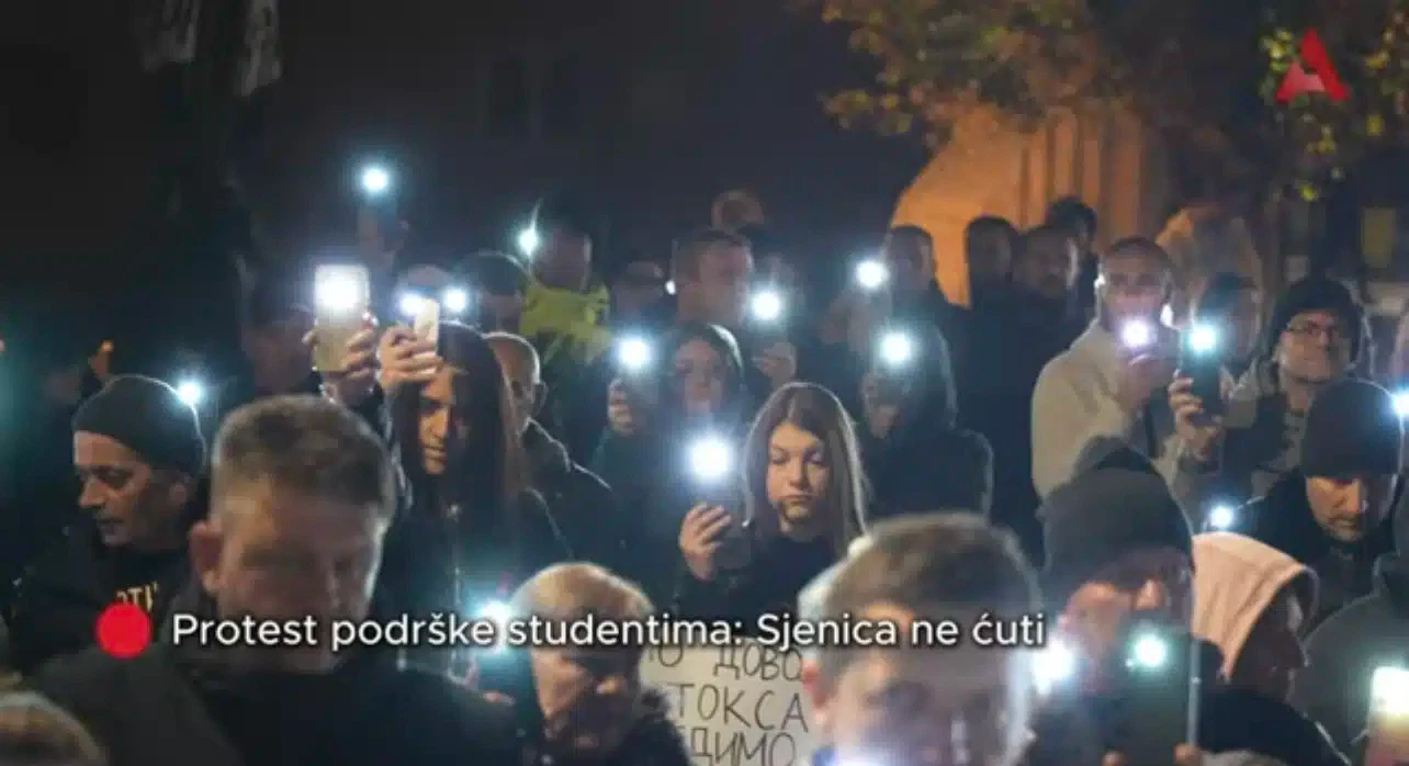 Protest podrške studentima u Sjenici počeo je u 20 časova, nakon čega je usledila protestna šetnja kroz centar grada. Skup je završen simbolično, pesmom Halida Bešlića „Ko bi rek’o čuda da se dese“, u znak sećanja i zajedništva.