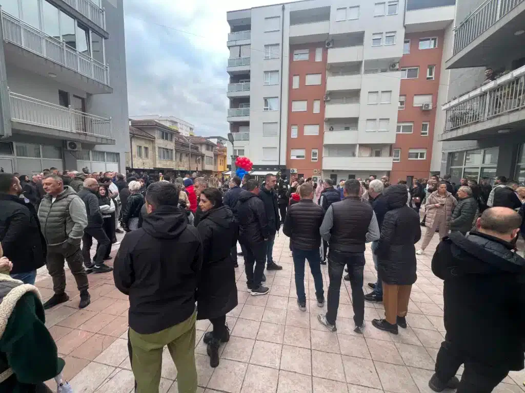 Okupljeni su nosili stranačka obeležja i transparente sa porukama „Srbija protiv nasilja“ i „SNS je uz Novi Pazar“, poručujući da se protive blokadama koje, prema njihovim rečima, “narušavaju red i stabilnost u zemlji”.