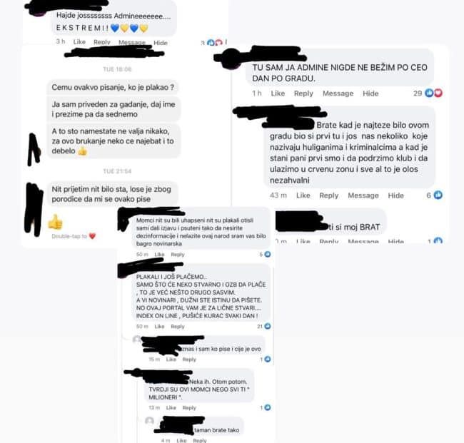 Indeksonline je na svom facebook profilu dobio pretnje od nepoznatih osoba, nakon teksta, „Novopazarski huligani plakali u policiji“.