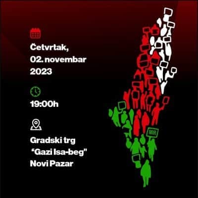 Drugi protest podrške Palestini zakazan je za četvrtak, 02.11.2023. u 19h pod sloganom “Za slobodu, za mir, za Palestinu!”, koji organizuje predstavnica udruženja En Nisa.