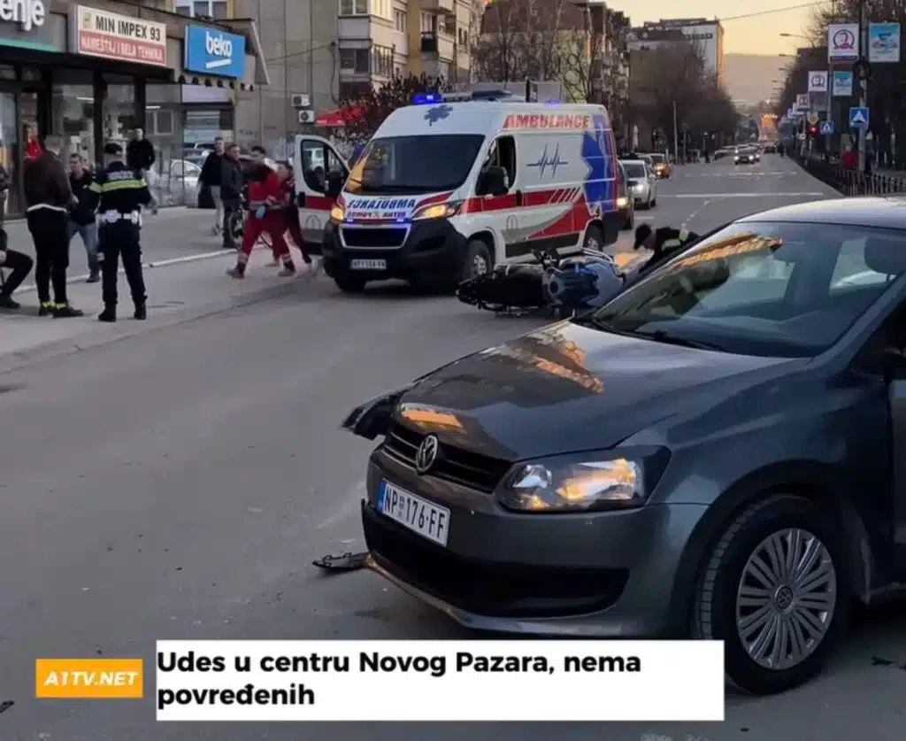 Nema povređenih u saobraćajnoj nezgodi koja se dogodila u centru grada. Prema dostupnim informacijama, sudarili su se putničko vozilo i motocikl.