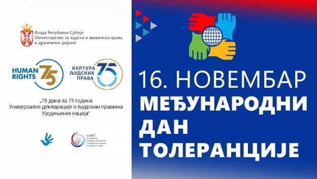 Prihvatanje i uvažavanje svakog oblika različitosti jesu prava mera za kvalitetan suživot svih građanki i građana, i to ne samo u jednom društvu, nego i na čitavoj planeti, saopštilo je Ministarstvo za ljudska i manjinska prava i društveni dijalog Vlade Republike Srbije povodom Međunarodnog dana tolerancije.