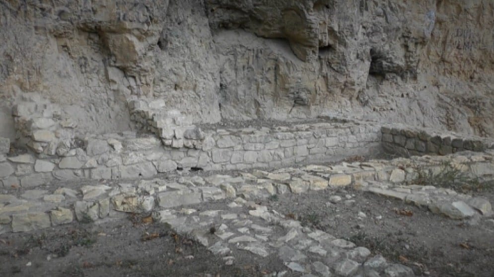 U steni su i danas vidljivi ostaci krovne konstrukcije.